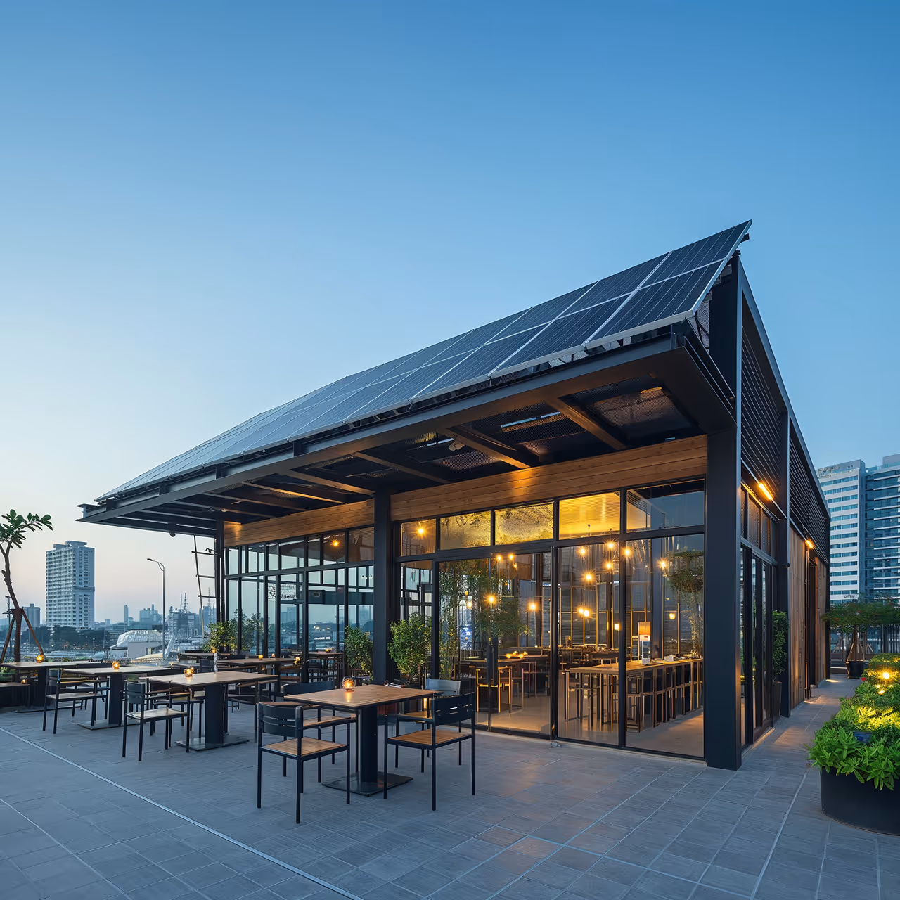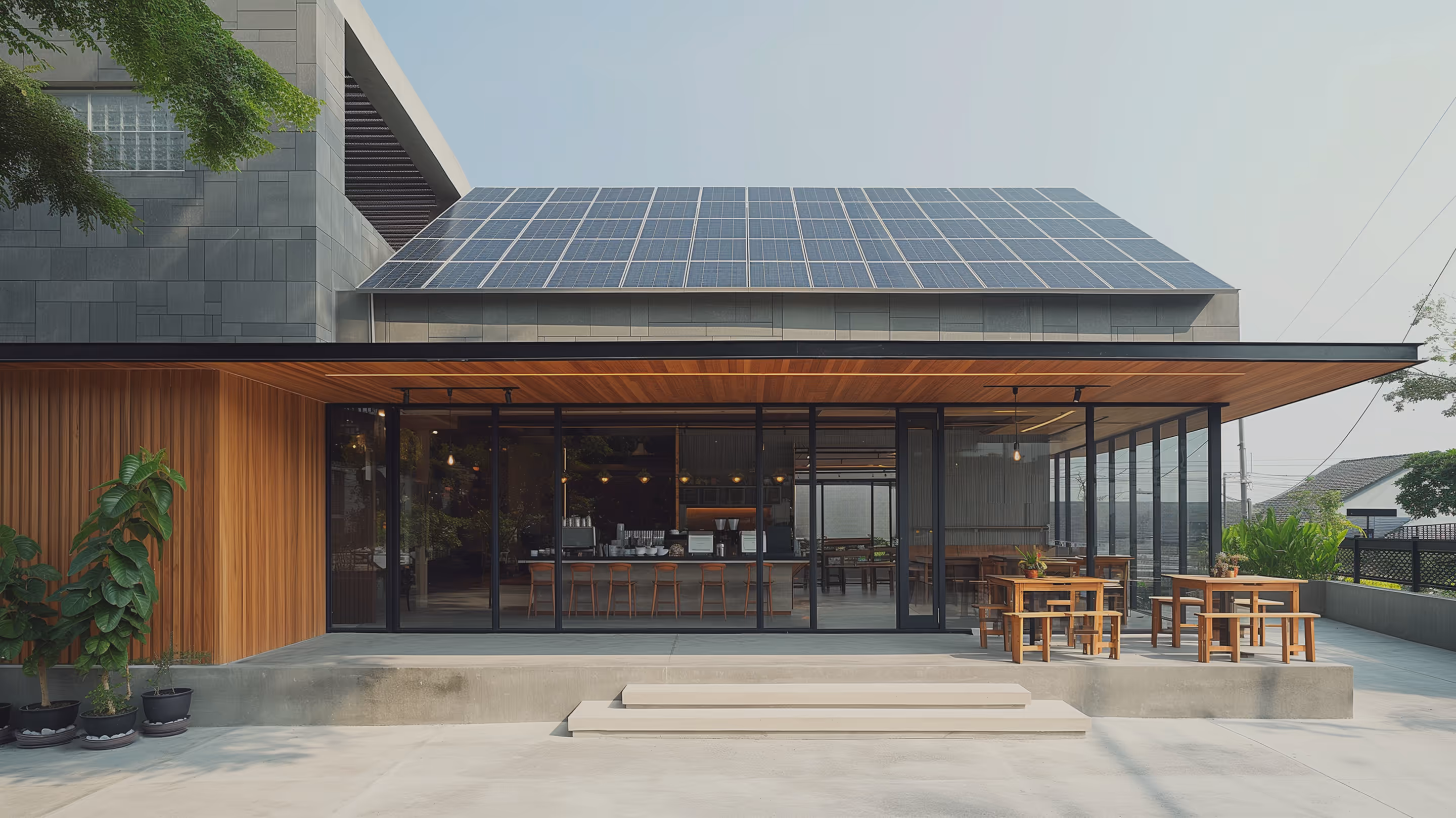Кофейня площадью 50 м² с холодильной витриной, кофемашиной и кондиционером экономит до 5 000 ฿ в месяц и может продолжать работать, даже если сеть отключится на час.